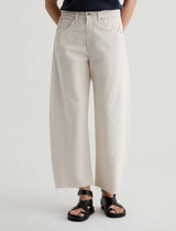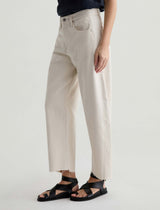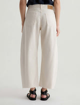 The Hattie Crop is a high-rise barrel jean with a 26.5” inseam, crafted from 11.75 oz. Soft Pure Denim in a clean white wash. Made from non-stretch denim and finished with a raw hem, it offers a structured feel with a modern edge.