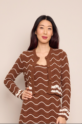 Jolene Cardigan - Brown Ivory Wave Multi Crochet