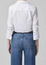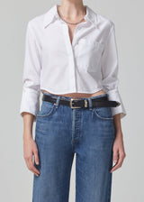 Crafted in our breathable sigature cotton, the Bea Top is cut with a cropped silhouette hitting right at the waist making it the perfect piece to pair back to high waist denim. Designed to be dressed up or down making this top the newest closet must-have.