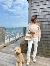 Let's head to the beach with this stylish and fun companion. Hand crafted with hundreds of little beads and details in raffia and leather, this jute bag is the perfect choice also for a stroll through the city or to the beach