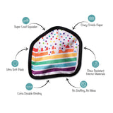 Gimme some sugar! Our “Piece of Cake” durable plush toy was designed with extended playtime in mind using chew resistant interior materials, extra durable binding, crazy crinkle paper, and a super loud squeaker. Plus, no stuffing makes this a mess-free playdate! It's sure to give your pup layers of fun.