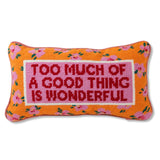 Make a statement with this charming-meets-chic needlepoint pillow. Hand embroidered in wool and backed in luxe salmon velvet, we've revived this Southern staple with sayings that are sure to get a smile.