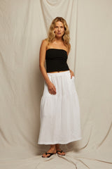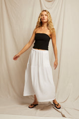 the bella skirt is what happens when easygoing meets elevated. made from our signature gauzy cotton, it’s lightweight, breezy, and gives off serious “i just got back from vacation” energy. the mid-thigh seam adds just the right amount of shape, while the full-length silhouette keeps things flowy and flattering.