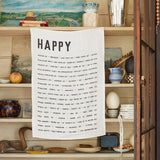 Our Happy towel lists commemorates a plethora of holidays, remembrances, and annual events, making it a supremely universal gift. Inspired by traditional English tea towels — made from pure linen to avoid surface lint when drying delicate china and glassware — each towel is printed using silk screens and cut from running yardage that comes off the loom with selvage sides before we hem it by hand.