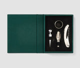 Discover the essential kit for perfecting your wine experience - a refined toolbox in an elegant book-like box that makes the perfect going-away gift. Inside, you'll find an opener, stopper, pourer, and collar, each serving as essential tools in wine appreciation. All products are made of stainless steel and are dishwasher safe.