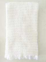 The Turkish Cotton Waffle Bath Towel is made with soft breathable naturally wicking cotton and finished with a self fringe. This towel is versatile and displays in any modern bathroom or it can be used as a chic pool or beach towel. Machine Wash.