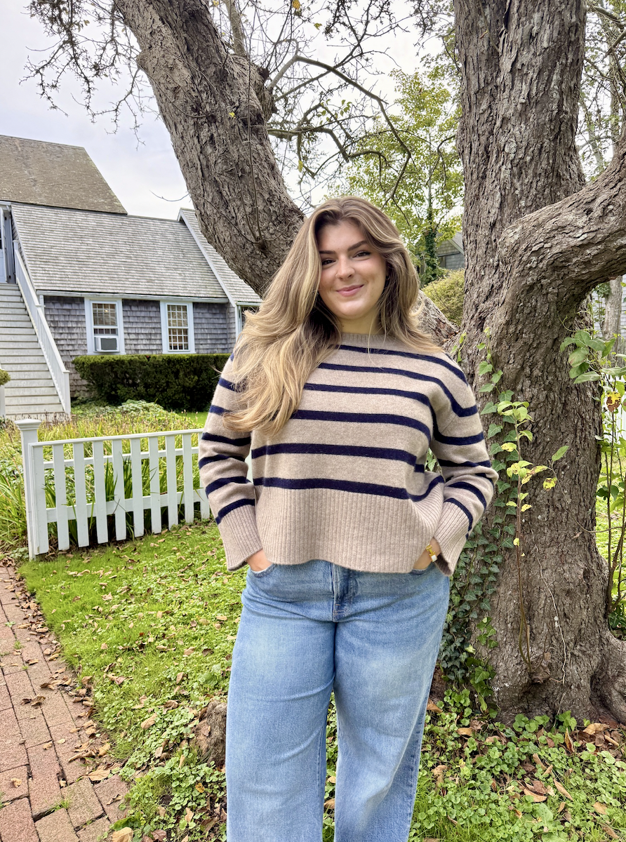 Introducing the Stripe Perfect Day Crew - a sweater crafted from the finest cashmere that will quickly become your favorite. Its relaxed, boxy fit makes it a go-to in your wardrobe. Elevate your style and add this must-have to your collection!