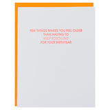 Our "Few Things Make You Feel Older than having to keep scrolling for your Birthyear" card is letterpress printed on a vintage printing press in sunny California.