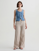 The Caden Wide leg trouser is a wide-leg, tailored pant crafted from Stretch Cotton Tencel™ Twill for a soft, flexible feel. Designed with a relaxed fit at the hips and a loose, roomy cut through the legs, this Sulfur Simple Taupe fit offers comforting structure. Details include a faux-horn button closure, slant front pockets, and welt pockets at the back.