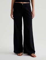 An update on our best-selling women's trousers, the Caden Wide Leg pants feature a relaxed fit at the hips and a loose, roomy cut through the legs. Soft and lightweight, these wide-leg trousers are crafted from 6.2 oz. Stretch Cotton Tencel Twill in a saturated black shade. Complete with slant front pockets and welt back pockets.