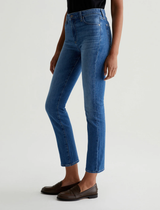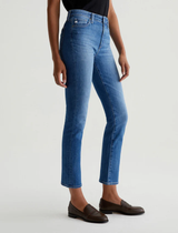 Mari is a high-rise slim-straight jean featuring a medium indigo wash with a generous amount of fading at the lap. Crafted from stretch-blend 11 oz. Journey Denim, these high-waisted jeans fit easy around the hips and have straight silhouette that slims down at the leg openings.