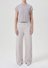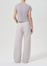 Mid-rise fit with a soft ease at the waist and a quiet, curved outseam and a slight taper.