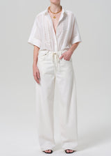 The Brynn Jean is cut in a lightweight denim and designed with a wide leg, a drawstring waist, and a full length inseam. Can easily go from beach to dinner with the addition of some jewelry and a strappy heel.