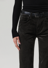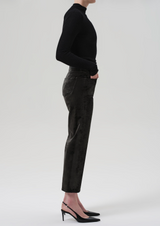 The ‘Delfina’ is a high-rise straight leg crafted from ultra-soft stretch velvet with a smooth, polished finish. Designed to flatter while offering ease, it brings a refined texture to everyday wear. The Olive Leaf hue—a rich, dark green—adds depth and versatility, ideal styled with crisp shirting or tonal knits.