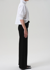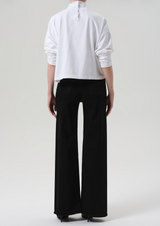 The Lyra is a vintage-inspired wide leg that sits high on the waist with a relaxed top block and full-length inseam. Crafted from soft stretch denim with a lightweight feel, Plush Black is a clean, true black wash that transitions seamlessly from day to night—style with classic sneakers or sharp heels.