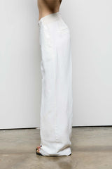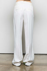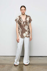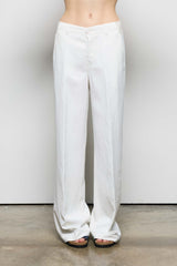 Trousers in a viscose linen blend with a shiny effect that adds a touch of discreet elegance. Visible button and covered zip fastening. Regular waist with comfort inserts on the sides. French pockets and single welt pockets on the back.
