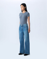 Selena offers a relaxed silhouette designed with a mid rise and wide leg. Featured with a structured no waistband. Crafted from Premium cotton fabric.