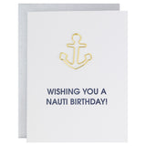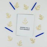 Our "Wishing You A Nauti Birthday" card is letterpress printed on a vintage printing press in sunny California. Card includes a heavy duty anchor paper clip.