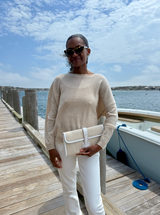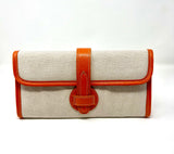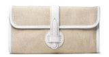 The Oliver Clutch is the perfect complement to any outfit. This linen clutch with leather trim is light, summery and an excellent casual alternative to more formal clutches. The Oliver has one interior pocket, and holds all the essentials: keys, credit cards & cell phone.