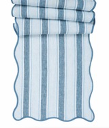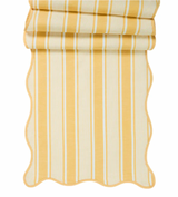 Inspired by idyllic days beside the sea, happy-up any table with classic cabana stripes of pure, crisp, breezy linen in candy-colored, sun-drenched hues. Beautifully finished with a scalloped trim for a touch of casual elegance. Pairs perfectly with practically everything—especially Aperol Spritzes and sunsets.