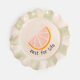 Put some colour in your tablescape with our new 'zest for life' hand painted glazed stoneware plate. Finished with a beautiful scalloped rim with green stripes and grapefruit slice design, our new plates are a must have in any kitchen.