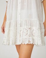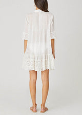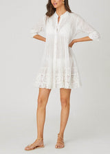 So easy and versatile, this button-down mini has become a Shoshanna classic. Pintucking across front and back with wide cotton lace trim that creates a border at the sleeve opening and bottom sweep. Covered button closure. Unlined.