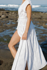 Upgrade your getaway looks with the Fontelina Dress - an effortlessly chic cover-up featuring a starry eyelet fabric, double drawstring waist, and a hidden clasp on the chest for extra coverage. This dress is all about the details and will leave you feeling beautiful and confident.
