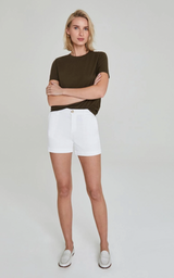 The Caden Tailored Trouser Shorts for women features a crisp white hue, relaxed fit through the hip, and slight tapering at the thigh. This women’s short is designed in a lightweight Italian twill with comfortable stretch and luxurious hand-feel. -