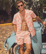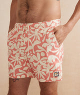 Mechanical Stretch 6" Swim Trunk - Coral Abstract Floral