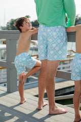 Elevate swimwear for the whole family! These luxurious and comfortable swim trunks are perfect for all day wear. Spun in a soft cotton spandex fabrication and complete with hand-painted print, these are sure to be worn on repeat for sun-filled trips. We can't wait to pair these with the kids' trunks for the sweetest matching moments!