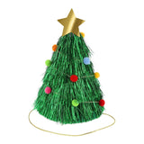 * 6 Paper party hats wrapped in a green tinsel fringe