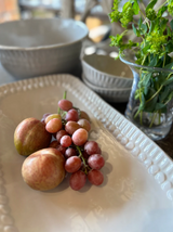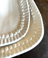A deep and generous serving Oval that won't break or crack that looks great on every table... who doesn't need it? The Dottie Serving oval is all you need! The hand molded dotted edge is what makes our this pattern so special. 17" X 9.75" X 2", this beautiful oval platter makes a fantastic wedding, Mother's Day or any day gift. Best of all, it looks like hand thrown pottery becuase it started out that way...and that might be what we love most. 100% melamine BPA free