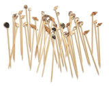 This set of 40 Sea Fare wooden food picks are perfect for serving appetizers or cocktail garnishes. Each pick features a charming seashell accent that is applied by hand. The picks measure 6" long and the set is packed in a paper wrapped container, making them a great gift!