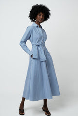 The dress for when you need to be a lady. The bodice drapes on the bias over the shoulders and arms but nips in at the waist for a flattering silhouette. The circle skirt moves gracefully with you. The sash belt can be tied in a beautiful bow to further accentuate the waist. This feminine long sleeve dress is now offered in our newest luxurious fabric, Sycamore.