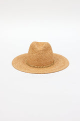 Raffia Braid Continental Hat - Natural/Gold Bead