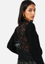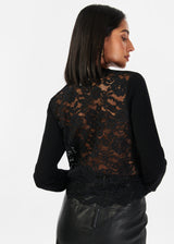 Long sleeve V-NECK SWEATER WITH SHEER LACE BACK