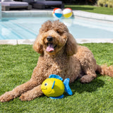For pups that love to play in water! Meet "Pipsqueak," a floating dog toy from our Splash Mates collection. Featuring a super loud squeaker, crazy crinkle paper, the ability to float, and high-visibility neoprene, this toy is the reel deal. Perfect to take to the beach, pool, and lake!