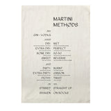 While the American dish towel originated from the prudent repurposing of used cotton feed sacks, our ever-growing collection was inspired by an English tea towel, made from pure linen to avoid surface lint when drying delicate china or glassware. Printed using silk screens, each piece is cut from running yardage that comes off the loom with selvage sides before we hem the ends by hand. Our latest introduction highlights Martini Methods, continuing our exploration of all things related to our favorite pastimes — cooking, dining, and hosting. Our Martini Methods tea towel is printed using silk screens and cut from running yardage that comes off the loom with selvage sides before we hem it by hand.