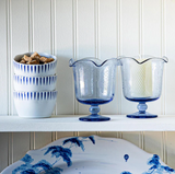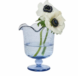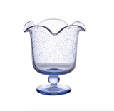As a delightful centerpiece, in pairs on the mantel or in clusters—this eye-catching hurricane brings a splash of whimsy and a pop of color to any space. Inspired by the traditional bubbly glassware from Provence in southern France, this perpetually effervescent statement piece is handmade of sturdy mouth-blown glass with a beautiful pedestal base and a subtly ruffled rim.
