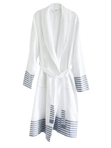 Unwind in style at the beach house with our Cool Cotton Sailing Stripe Robe. Effortlessly chic, this robe offers a comfortable escape. It's not just fashionable but also easy to care for with its machine washable feature. Plus, enjoy the perfect fit with its unisex sizing.