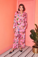 - Wide leg trousers with pockets, piping detail and semi-drawstring waist