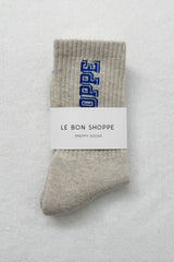 Inspired by sporty academia charm, the Preppy Socks are a playful twist on our classic Boyfriend style. They feature a traditional crew length with outlined block letter branding up the leg, plus elevated original branding on the sole. Finished with breathable mesh and a supportive arch band for all-day comfort and an effortless fit.