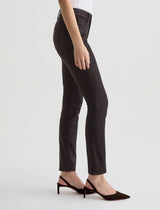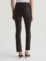 The Mari mid-rise straight leg jean for women features a leatherette-coated black hue. Mari offers a flattering mid-rise waist and fits easy around the hips, finished with a straight leg and subtle slim leg opening. This women’s straight jean is designed in 8.7 oz. Hyper Soft Bull Denim, an exclusive AG Cloud Soft Denim™ fabric. This special left-hand twill allows the yarns to gently relax and untwist for a luxe, supple feel. It's designed to get even softer the more you wear it. There's dual-elastic stretch built in for extra comfort and powerful recovery.