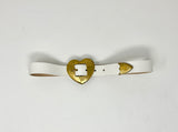 Add a vintage touch to your look with this unique solid brass heart belt. Designed in smooth leather detailed with a solid brass heart buckle and tip.