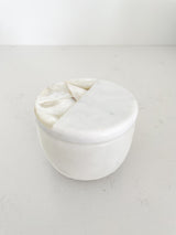 The White Mother of Pearl White Marble Candle is made with 100% Soy Wax. The Mother of Pearl is a natural Iridescent White color tone with hints of light golden accents.