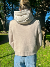 Introducing the Tahoe jacket. A luxurious combination of cashmere and down. Removable down hood. Gold hardware. Get the best of both worlds with our Tahoe jacket - it's equal parts cozy and stylish. And if you want to switch things up, you can even remove the down hood! Plus, who doesn't love a touch of gold hardware?