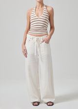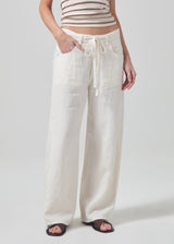 The Brynn Trouser is crafted in ultra-breathable linen. Sitting relaxed at the waist into a wide leg silhouette. The drawstring waistband adds the perfect casual Summer touch.
