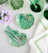 This three dimensional geranium leaf features an amphibious friend resting on its edge.