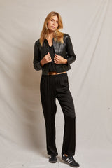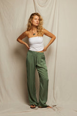 dressed up or down, the camille pull on satin pant will be your every day hero. we are wearing ours with everything from chunky knits, crisp button downs and back to the delphine tee.