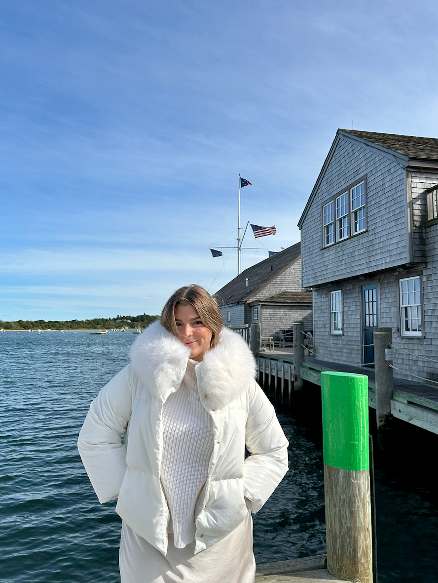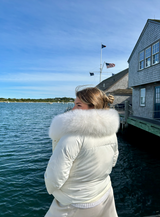 Introducing the Hallstat - A luxurious down coat with beautiful details from the bracelet length sleeves to the removable fox fur collar. Snap closure.